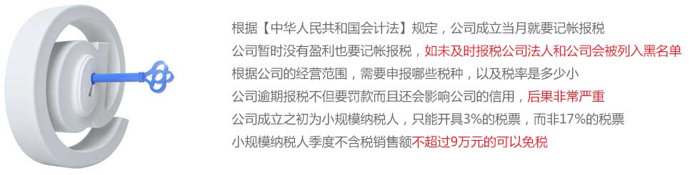 • 根據【中華人民共和國會計法】規定,公司成立當月就要記帳報稅